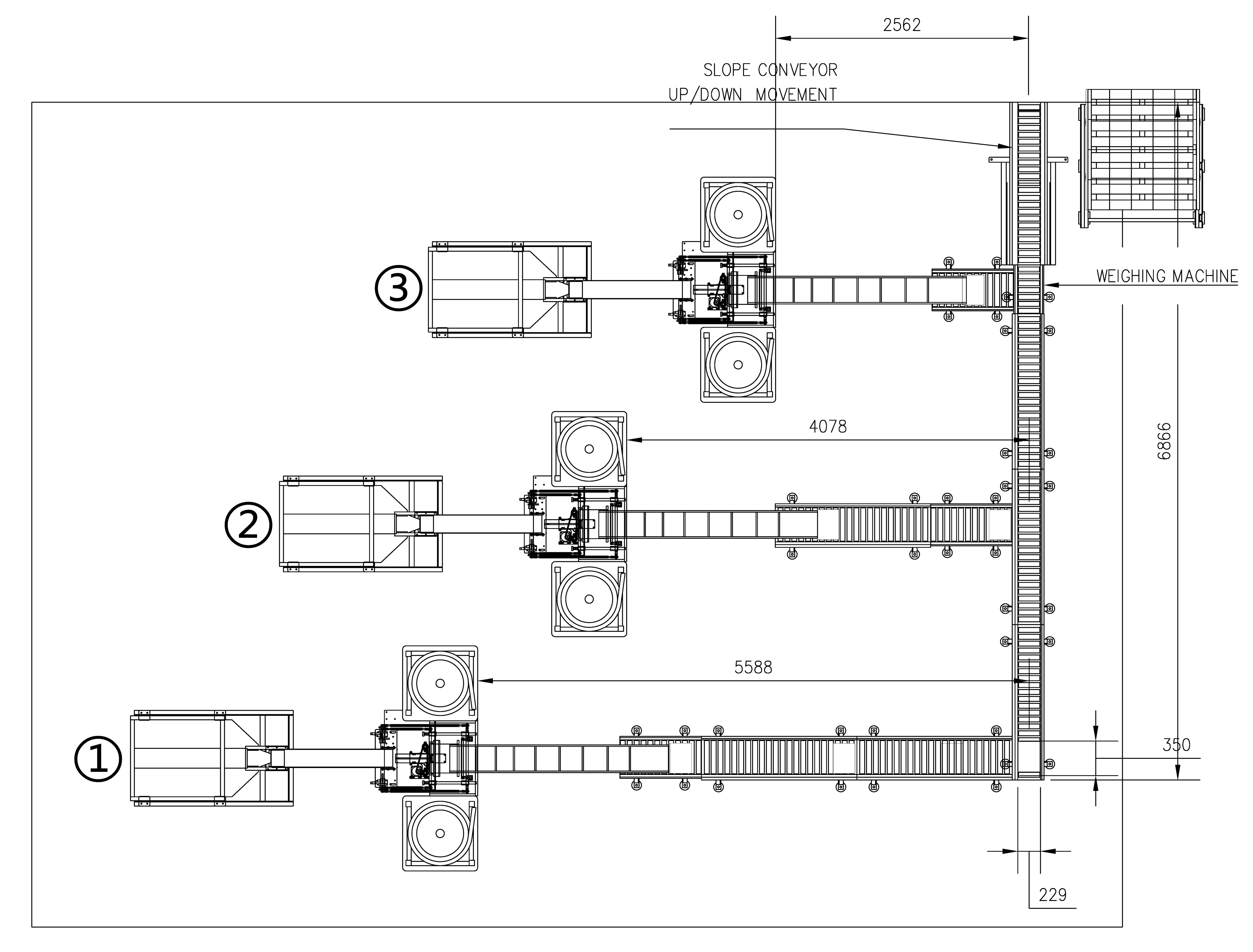 | Carton Conveying Line | Counter display, roller conveyor, conveyor jointing lifting belt, weighing machine (weight recheck), adjustable roller conveying board (motorized) |